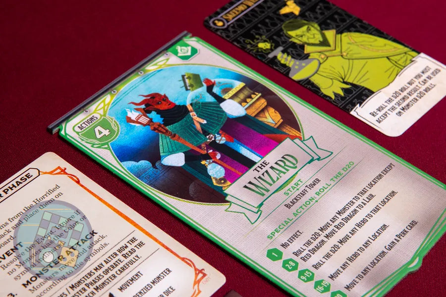 Horrified: Dungeons & Dragons features gameplay elements familiar to players of other games in the series: Players work together to face monsters and puzzle-like obstacles to gather item tokens, protect citizens, and avoid attacks. Unique and thematic challenges for each monster further immerse players into the detailed setting and story. Additionally, each player chooses to play as one of five heroes inspired by character classes from D&D: wizard, rogue, fighter, cleric, or bard — each with a unique set of abilities that can aid their party as they move around the board to defeat the monsters dwelling in the dungeon below Waterdeep.