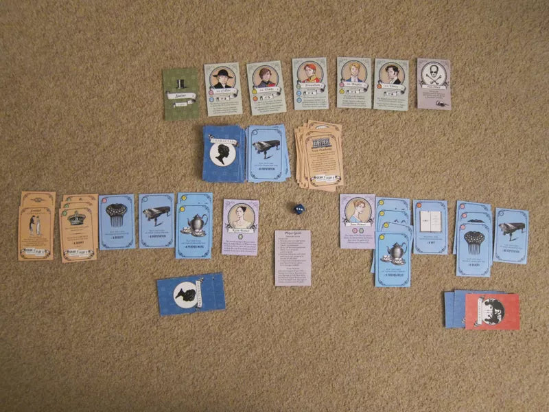 Marrying Mr. Darcy is a role-playing game where players are one of the female characters from Jane Austen’s novel Pride and Prejudice. Players work to improve themselves and become more desirable as potential wives for the available Suitors. The ladies do this by attending Events and improving their Characters, but advantage can be gained by the use of Cunning. All of their efforts are in hopes of securing the husband that will make them the most satisfied character at the end of the game.