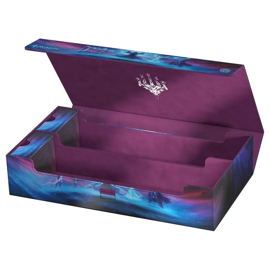 The Omnihive 1000+ Xenoskin is designed to hold multiple deck boxes, dice and/or playmats at once with the help of two flexibly positioned magnetic trays. The deck case, made of the popular and resistant Xenoskin material and printed with officially licensed art from Magic: The Gathering’s upcoming set "Tarkir: Dragonstorm", is also the perfect choice for storing a larger collection of individual cards (up to 1000 double-sleeved).