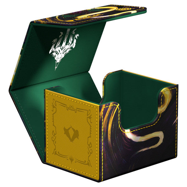 The Sidewinder 100+ made from durable Xenoskin material holds up to 100 double-sleeved or 120 single-sleeved cards, which are kept secure in the deck box thanks to a strong magnetic closure and soft microfiber interior. The sturdy, high-quality Xenoskin surface of the Sidewinder is printed in full color with officially licensed artwork from Magic: The Gathering’s Tarkir: Dragonstorm set