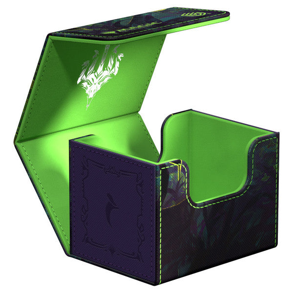 The Sidewinder 100+ made from durable Xenoskin material holds up to 100 double-sleeved or 120 single-sleeved cards, which are kept secure in the deck box thanks to a strong magnetic closure and soft microfiber interior. The sturdy, high-quality Xenoskin surface of the Sidewinder is printed in full color with officially licensed artwork from Magic: The Gathering’s Tarkir: Dragonstorm set.