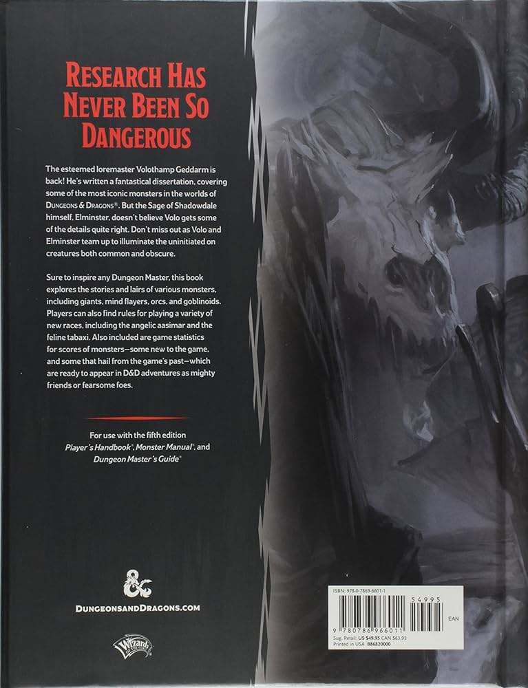 The esteemed loremaster Volothamp Geddarm is back and he’s written a fantastical dissertation, covering some of the most iconic monsters in the Forgotten Realms. Unfortunately, the Sage of Shadowdale himself, Elminster, doesn’t believe Volo gets some of the important details quite right. Don’t miss out as Volo and Elminster square off (academically speaking of course) to illuminate the uninitiated on creatures both common and obscure. Uncover the machinations of the mysterious Kraken Society, what is the origin of the bizarre froghemoth, or how to avoid participating in the ghastly reproductive cycle of the grotesque vargouille. Dungeon Masters and players will get some much-needed guidance as you plan your next venture, traipsing about some dusty old ruin in search of treasure, lore, and let’s not forget ... dangerous creatures whose horns, claws, fangs, heads, or even hides might comfortably adorn the walls of your trophy room. If you survive.