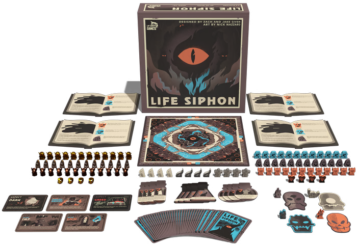 Each player's goal in Life Siphon is to defeat the player to their left, and the game ends when the first player drops to zero health, meaning you must plan your strategy to be effective offensively against one player while defending against another. Since everything costs your own health, the heavier your offense, the more vulnerable you are. You may even find yourself aiding your attacker to give you the opportunity to make the killing blow.