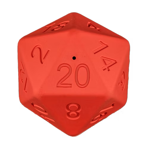 Unleash your pup’s inner warrior with the Fire Red Barbarian Strength D20, the ultimate treat-dispensing dog toy for aggressive chewers. Crafted from ultra-durable, non-toxic rubber, this Dungeons & Dragons-inspired toy can withstand even the toughest jaws while providing interactive fun. Stuff it with treats or kibble to keep your dog entertained for hours. Whether your furry friend is a barbarian or a rogue, this indestructible D20 dog toy is a must-have for every adventurer!